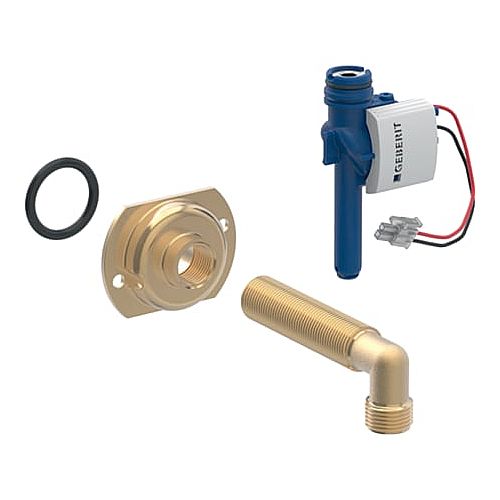 Zusätzlicher Lieferumfang - Magnetventil mit Mengenregler 14 l/min - Nachrüstadapter für Zulauf Rp 1/2" - Rundschnurring aus EPDM - Anschlusswinkel G 1/2" / G 1/2" Zusätzlich zu bestellen - Geberit Urinal Selva, für UP-Steuerung - Geberit Urinal Tamina, für UP-Steuerung