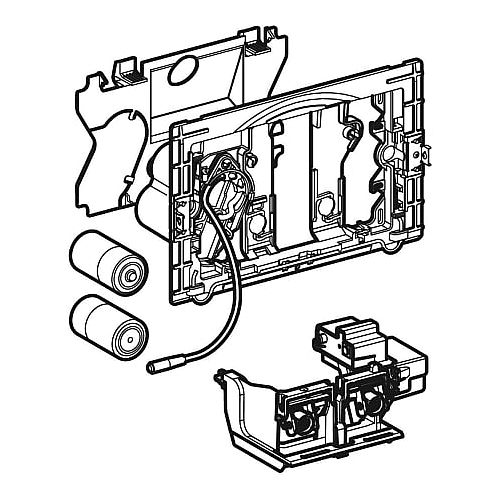 Verwendungszwecke - Zur manuellen Fernauslösung von Geberit Sigma UP-Spülkästen 12 cm über Geberit Funktaster Eigenschaften - Spülauslösung über Geberit Funktaster, drahtlos Technische Eigenschaften - Batterietyp: LR20 - Schutzart: IP45 - Betriebsspannung (V): 3 V DC - Maximale Leistungsaufnahme (W): 4 W - Leistungsaufnahme Standby (W): 0,15 W - Funkfrequenz (MHz): 868,4 MHz - Funkreichweite (m): 10 m - Intervallspülung Einstellbereich (h): 1-168 h - Intervallspülung Werkseinstellung (h): 24 h - Intervallspülzeit Einstellbereich (s): 1-200 s - Intervallspülzeit Werkseinstellung (s): 5 s - Werkstoffbezeichnung: - Zusätzlicher Lieferumfang - Befestigungsrahmen mit Batteriefach vormontiert - Schutzplatte - Lagerbock mit Servomotor und Hebevorrichtung, vormontiert - Steuerelektronik mit Funkempfänger - 2 Alkali-Mangan-Batterien LR20, je 1,5 V Zusätzlich zu bestellen - Betätigungsplatte oder Abdeckplatte - Funktaster