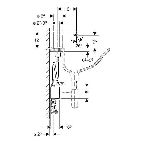 Verwendungszwecke - Zum Einbau in Waschtische oder Arbeitsplatten - Zum Anschließen von Kalt-, Warm- oder Mischwasser - Für den Einsatz mit Edelstahlbecken - Für einen Durchfluss 3 l/min - Nicht geeignet für Kleindurchlauferhitzer Eigenschaften - Armaturengruppe I nach DIN 4109 - Automatische Spülauslösung - IR-Sensor selbsteinstellend - Volumenstrombegrenzung durch Strahlregler - Temperaturvoreinstellung über Untertischmischer (nur bei Ausführung mit Mischer) - Wasser nicht rein warm oder rein kalt einstellbar (nur bei Ausführung mit Mischer) - Stromversorgung durch Generator und Akku - Warnung bei niedrigem Ladezustand des Akkus - Wasserersparnis durch reaktionsschnelle Zweistrahl-Abtasttechnik - Programm Wassersparen einstellbar - Dauerspülung individuell einstellbar - Funktionen mit Geberit Service-Handy einstellbar und abfragbar - Spülauslösung über Geberit Clean-Handy deaktivierbar - Verschiedene Funktionen manuell einstellbar - Mit integriertem Rückflussverhinderer - Ab durchschnittlich 20 Benutzungen pro Tag mit einer Dauer von jeweils 4 s funktioniert die Waschtischarmatur autark Lieferumfang - Generatoreinheit - Panzerschlauch 3/8" - Korbfilter - Übergang auf Eckventil G 3/8" - Untertischmischer (nur bei Ausführung mit Mischer) - Schlüssel für Strahlregler - Befestigungsmaterial Fabrikat: Geberit Artikel-Nr.: 116.366.21.1