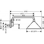 - Brausekopfgröße: 279 mm - Brausearmlänge 400 mm - Brausearm horizontal schwenkbar um 150grad - Kopfbrause im Winkel verstellbar