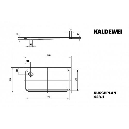 Design Beschreibung: Die einfachsten Dinge im Leben sind oft die Erfrischendsten. So wie die DUSCHPLAN XXL in modernem, zeitlosem Design und mit nur 65 mm Tiefe. Dieser Klassiker unter den Dusch- wannen lässt sich nahezu in alle Bäder einbauen. Phoenix Design. Außenform: Rechteck Außenmaß: 700x1400 mm Randhöhe: 32 mm Tiefe: 65 mm Produkt: Stahl-Email Duschfläche Modell-Nr.: 423-1 Modell: DUSCHPLAN XXL Hersteller: KALDEWEI Garantie: 30 Jahre (gem. Garantiepass) MADE IN GERMANY Material: KALDEWEI Stahl-Email Ablaufloch: d 90 mm Ablaufposition: Eckablauf Min. Höhe mit Ablaufgarnitur (in Kombination m. KA 90 ultraflach): 125 mm Gewicht: 27 kg Basisfarbe: alpinweiß Gem. EU-Bauproduktenverordnung (BauPVO): CE 15 KDW001 PH/gekennzeichnet nach DIN EN 14527 - CL1+CL2 Zertifizierte Oberfläche: Kratz- und schlagfest, chemikalienresis- tent, hitzebeständig, UV beständig, nachhaltig, formstabil, pflegeleicht und hygienisch. Erdungslasche für Potenzialausgleich. Optionales Zubehör: Montagesystem FR 5300 FLEX / FLEX PLUS. Ablaufgarnituren KA 90, KA 90 extraflach, KA 90 ultraflach, KA 90 senkrecht. Mitten-Abstütz-System MAS 5305 Duschwannen-Antidröhn-Set DW-ADS, Duschwannen-Schalldämmset DWS, Wannen-Anschluss-Schalldämmband WAS 70, DICHTSET FLEX, DICHTSET BODENEBEN. Empfohlene Oberflächen: rutschhemmende Antislip/Vollantislip- Emaillierung, pflegeleichter PERL-EFFEKT. Weitere Sanitärfarben. Sicherheitstechnische Untersuchung: Der TÜV Rheinland bestätigt der Antislip/Vollantislip-Emaillierung und SECURE PLUS Oberfläche von KALDEWEI eine Rutschhemmung gemäß Bewertungsgruppe B für nassbelastete Barfußbereiche (DIN 51097), und gemäß Bewertungsgruppe R10 für rutschhemmende Eigenschaften in Arbeitsräumen und Arbeitsbereichen mit erhöhter Rutschgefahr (DIN 51130).