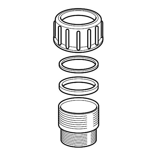 Verwendungszwecke - Zur Gebäudeentwässerung Eigenschaften - Schleifring aus PP - Mit Dichtung aus EPDM Lieferumfang - Schutzdeckel - Quetschverschraubung aus PP