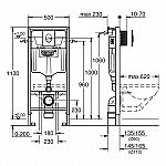 GROHE Rapid SL 3 in 1-Set für WC 1,13 m Bauhöhe für Vorwand- oder Ständerwandmontage Stahlrahmen komplett vormontiert mit Schnellverstellung und Höhensicherung Befestigungsmaterial, TÜV-geprüft 2 WC-Haltebolzen, Keramikbefestigung WCs mit Auflagefläche < 205 mm erfordern Abstützungsset 38 779 Schraubenabstand 180/230 mm Ablaufbogen D: 90 mm, tiefenverstellbar Reduzierstück D: 90/110 mm, Zu- und Ablaufgarnitur Spülkasten GD 2, 6-9l werkseitige Einstellung 6l und 3l pneumatisches Ablaufventil mit zwei Funktionen: 2 Mengen oder Start & Stopp Wasseranschluss von links/rechts/hinten Armaturengruppe I, schwitzwasserisoliert Wasseranschluss DN 15 mit integriertem Eckventil und werkzeugloser Schlauchverschraubung werkzeuglos montierbarer Revisionsschacht mit Rohbauschutz mit Zubehör für Vorwandmontage mit Abdeckplatte Skate Air senkrechte Montage, alpinweiß