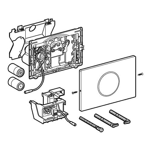 Verwendungszwecke - Zur berührungslosen Spülauslösung von Geberit Sigma UP-Spülkästen 12 cm - Nicht geeignet für barrierefreies Bauen Eigenschaften - Automatische Spülauslösung - Berührungsloses Auslösen einer 1-Mengen- oder 2-Mengen-Spülung durch Annäherung mit der Hand - Betätigungsplatte verschraubbar - Batterien in geschlossenem Batteriefach im Spülkasten - Mit verwechslungssicherer Steckverbindung - Sichere IR-Distanzerkennung - Vorspülung einstellbar - Funktionen mit Geberit Service-Handy einstellbar und abfragbar - Spülauslösung über Geberit Clean-Handy deaktivierbar - Elektrische Hebevorrichtung selbstkalibrierend Lieferumfang - Betätigungsplatte Sigma10 - Befestigungsrahmen mit Infrarotsteuerung und Batteriefach, vormontiert - Schutzplatte - Lagerbock mit Servomotor und Hebevorrichtung, vormontiert - 2 Alkali-Batterien LR20, je 1,5 V - Drückerstange - Befestigungsmaterial