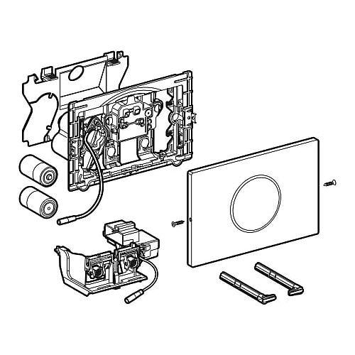 Verwendungszwecke - Zur berührungslosen Spülauslösung von Geberit Sigma UP-Spülkästen 12 cm Eigenschaften - Berührungsloses Auslösen einer 1-Mengen- oder 2-Mengen-Spülung durch Annäherung mit der Hand Technische Eigenschaften - Batterietyp: LR20 - Schutzart: IP45 - Betriebsspannung (V): 3 V DC - Maximale Leistungsaufnahme (W): 4 W - Leistungsaufnahme Standby (W): 0,15 W - Intervallspülung Einstellbereich (h): 1-168 h - Intervallspülung Werkseinstellung (h): 24 h - Intervallspülzeit Einstellbereich (s): 1-200 s - Intervallspülzeit Werkseinstellung (s): 5 s - Verweilzeit Einstellbereich (s): 1-60 s - Verweilzeit Werkseinstellung (s): 7 s - B / Breite (cm): 24,6 cm - H / Höhe (cm): 16,4 cm - Werkstoffbezeichnung: Edelstahl - T / Tiefe (cm): 1,5 cm Zusätzlicher Lieferumfang - Betätigungsplatte Sigma10 - Befestigungsrahmen mit Infrarotsteuerung und Batteriefach, vormontiert - Schutzplatte - Lagerbock mit Servomotor und Hebevorrichtung, vormontiert - 2 Alkali-Mangan-Batterien LR20, je 1,5 V - Befestigungsmaterial