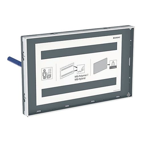 Verwendungszwecke - Zum Abdecken der Serviceöffnung von Geberit Sigma UP-Spülkästen - Für Fliesenaufbauten auf Abdeckplatte mit Sichtrahmen max. 10 mm Eigenschaften - Einbau flächenbündig - Sichtrahmen für Abdeckplatte hochglanz-verchromt - Bereitstellung der Oberfläche und Komplettierung erfolgt durch Kunden Technische Eigenschaften