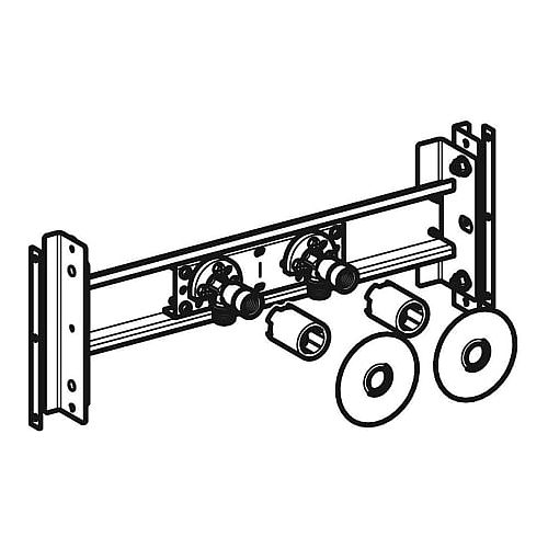 Verwendungszwecke - Für Trockenbau - Zum Einbau in raumhohe Installationswände - Zum Einbau in raumhohe Geberit Duofix Systemwände - Für AP-Wandarmaturen Eigenschaften - Traverse verzinkt - Traverse in der Breite anpassbar - Wasseranschlüsse horizontal, stufenlos verstellbar Lieferumfang - 2 Anschlusswinkel Rp 1/2" - R 1/2", MF-fähig - 2 Schalldämmunterlagen - 2 Dämmhülsen - Befestigungsmaterial