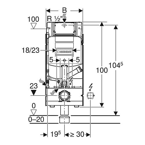 Verwendungszwecke - Zum Einbau in Geberit GIS Tragsysteme für Vorwände, Trennwände oder frei stehende Wände - Für barrierefreies Bauen geeignet - Für Wand-WCs mit Anschlussmaßen nach DIN EN 33:2011-11 - Für Wand-WCs mit verlängerter Ausladung bis 70 cm - Zum Anschließen einer externen Geruchsabsaugung - Für 1-Mengen-, 2-Mengen- oder Spül-Stopp-Spülung - Für Fußbodenaufbauten 0-20 cm - Nicht geeignet für Wand-WC-Keramiken mit erhöhter Sitzposition Eigenschaften - Rahmen verzinkt - Rahmen mit vier Schnellbefestigungen - Im Geberit GIS Tragwerk stufenlos höhenverstellbar - Rahmen vorbereitet für Abstützungen bei WC-Keramiken mit kleiner Auflagefläche - Anschlussbogen in verschiedenen Tiefenpositionen werkzeuglos montierbar, Verstellbereich 45 mm - Befestigung Anschlussbogen schallgedämmt - UP-Spülkästen mit Betätigung von vorne - UP-Spülkasten schwitzwassergedämmt - Bei Werkseinstellung sofortiges Nachspülen möglich - Externe Geruchsabsaugung mit Anschlussmuffe D 50 mm über Spülbogen anschließbar - Montage- und Instandhaltungsarbeiten am UP-Spülkasten werkzeuglos - Wasseranschluss hinten oder oben mittig - Bauschutz für Serviceöffnung schützt vor Feuchtigkeit und Schmutz - Bauschutz für Serviceöffnung ablängbar - Ausgerüstet mit Leerrohr für Wasserzuleitung zum Anschluss von Geberit AquaClean Dusch-WCs - Mit Befestigungsmöglichkeit für Elektroanschluss Lieferumfang - Wasseranschluss R 1/2", MF-fähig, mit integriertem Eckventil und Handrad - Bauschutz für Serviceöffnung - Anschlussset für WC, D 90 mm - Anschlussbogen 90G aus PE-HD, D 90 mm - Übergangsmuffe aus PE-HD, D 90 / 110 mm - 4 Schutz- und Markierstopfen - 2 Gewindestangen M12 - Befestigungsmaterial Fabrikat: Geberit Typ: GIS Artikel-Nr.: 461.315.00.5