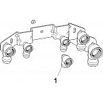 Sanpress-Montageeinheit, für Junkers-Gas-Kombi-/Kesselthermen, mit Leckwasseranschluss, alle Winkel aus Rotguss, Gasanschlusswinkel mit Gewindeanschluss, alle anderen Winkel mit Pressanschluss, mit gekröpfter Halterung,