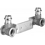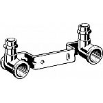 bestehend aus: gekröpfter Wandhalterung, zwei kurzen Anschlusswinkeln aus Rotguss, fertig auf Halterung aus Stahl verzinkt montiert, Stichmaß 120 mm, DN 25