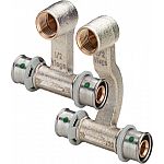 Sockelleisten-Heizkörperanschluss, mit SC-Contur, aus Rotguss vernickelt, für den Anschluss an Normal- oder Ventilheizkörper, mit Pressverbinder für Sanfix Fosta- und Sanfix Plus-Rohr, mit Verschraubungen G 1/2 x15, mantel - Einfach kaskadierbar mit Kaskadensets (Zubehör)