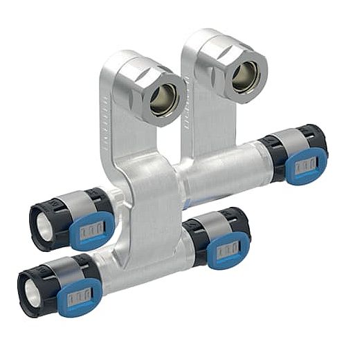 Verwendungszwecke - Ausschließlich für Heizung und Kühlung geeignet - Für Sockelleistensysteme Eigenschaften - Unverpresst undicht - Vernickelt - Bleifrei - Montage vollständig vor der Wand - Pressindikator - Vor- und Rücklauf wechselbar Technische Eigenschaften