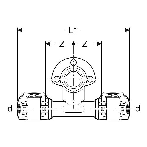 GE FlowFit T-Anschlusswinkel 90Gr abgesetzt Rg+ d20-Rp1/2-d20 L:36mm