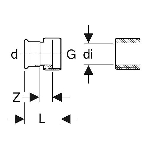 GE Mapress Edelstahl Übergang mit Überwurfmutter d54-G2