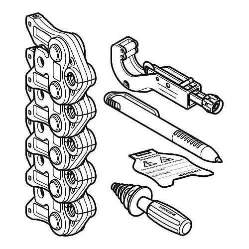 - Kompatibilität: (1) Zusätzlicher Lieferumfang - Pressbacken (1) - Rohrschneider - Fettstift mit versenkbarer Mine, gelb - PowerTest - Entgrat- und Kalibrierwerkzeug