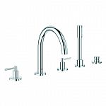 GROHE Atrio 5-Loch-Wannen-Kombination Keramik-Oberteile 1/2'', 90 Grad GROHE StarLight Oberfläche bestehend aus: Auslauf-Aufnahme vormontiert mit Hebelgriffen Wanneneinlauf mit Mousseur Umstellung Wanne/Brause Sena Handbrause 6,6 l/min Brauseschlauch 2.000 mm flexible Anschlussschläuche Anschluss für Brauseschlauch Eigensicher gegen Rückfließen kann mit 29 037 002 verwendet werden ein Set mit ''H'' und ''C'' Markierung, ein Set ohne Warm-Kalt-Markierung im Lieferumfang enthalten